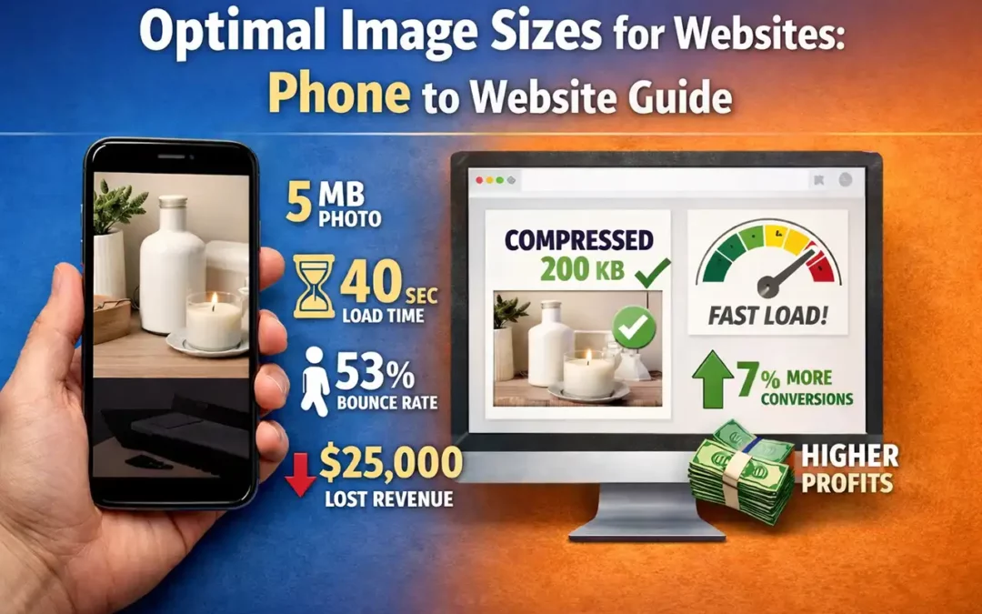 Bottom line: Phone cameras optimize for quality. Websites optimize for speed. That disconnect costs conversions.